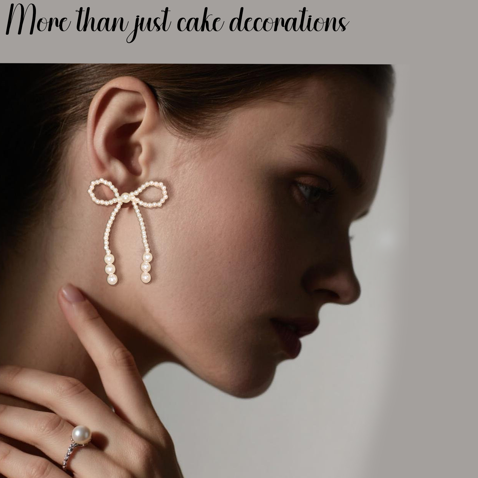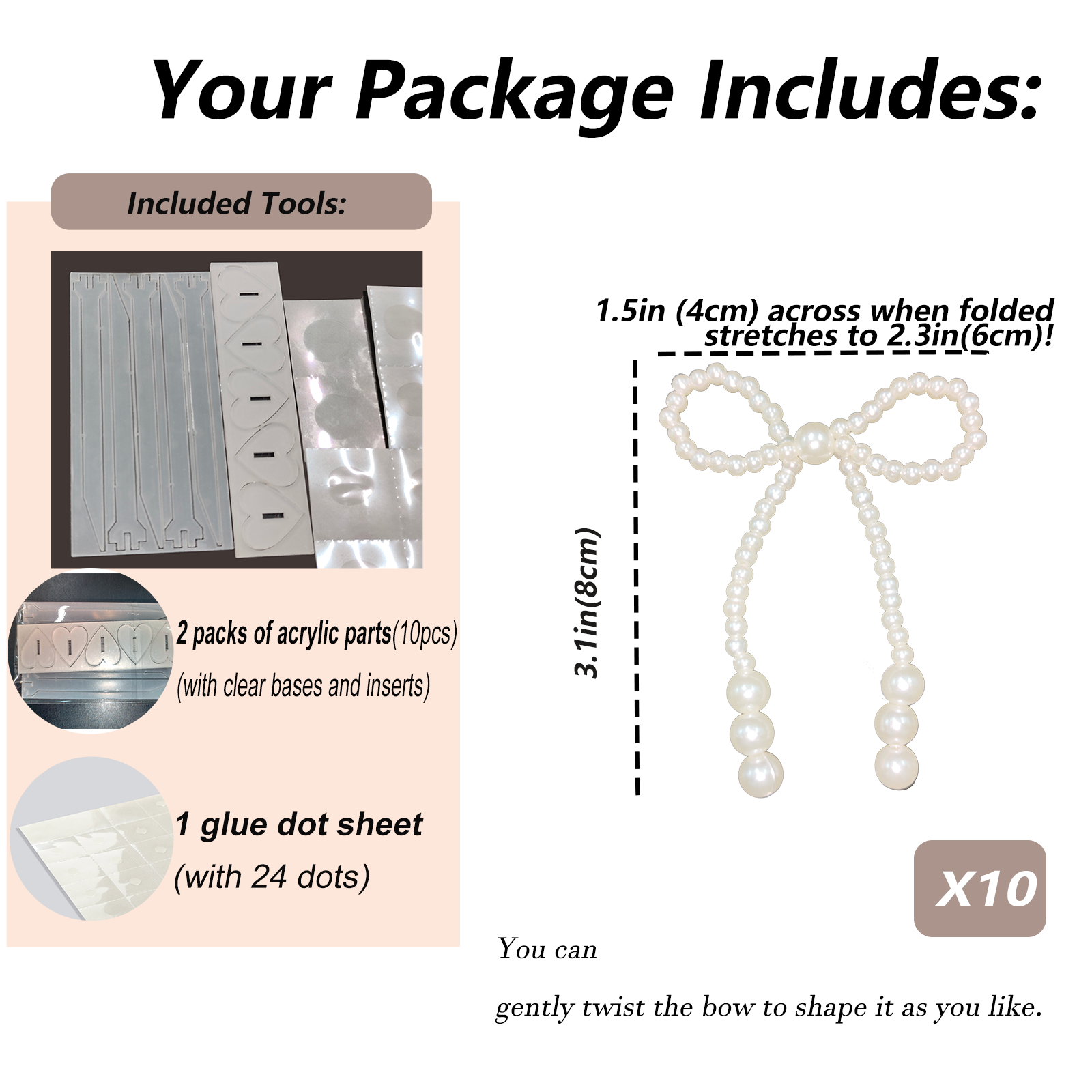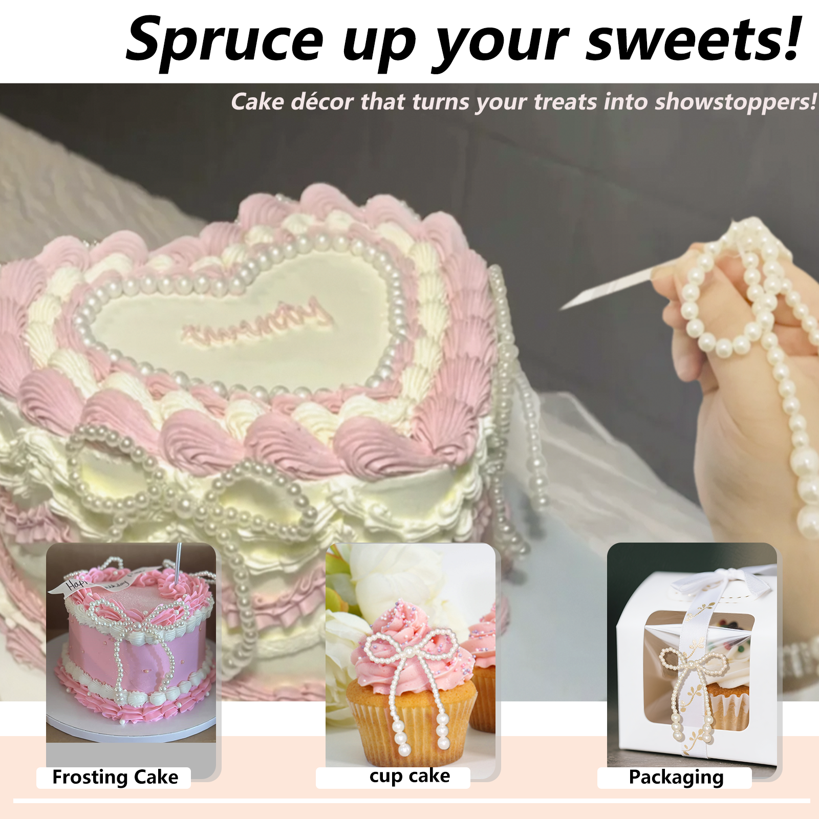 10Pcs Pearl Bow Cake Toppers 4” with 10 Acrylic Picks - Pearl Bows for Wedding, Birthday Cake Decorations,Flower Bouquets, Dessert Décor (S 3inch)