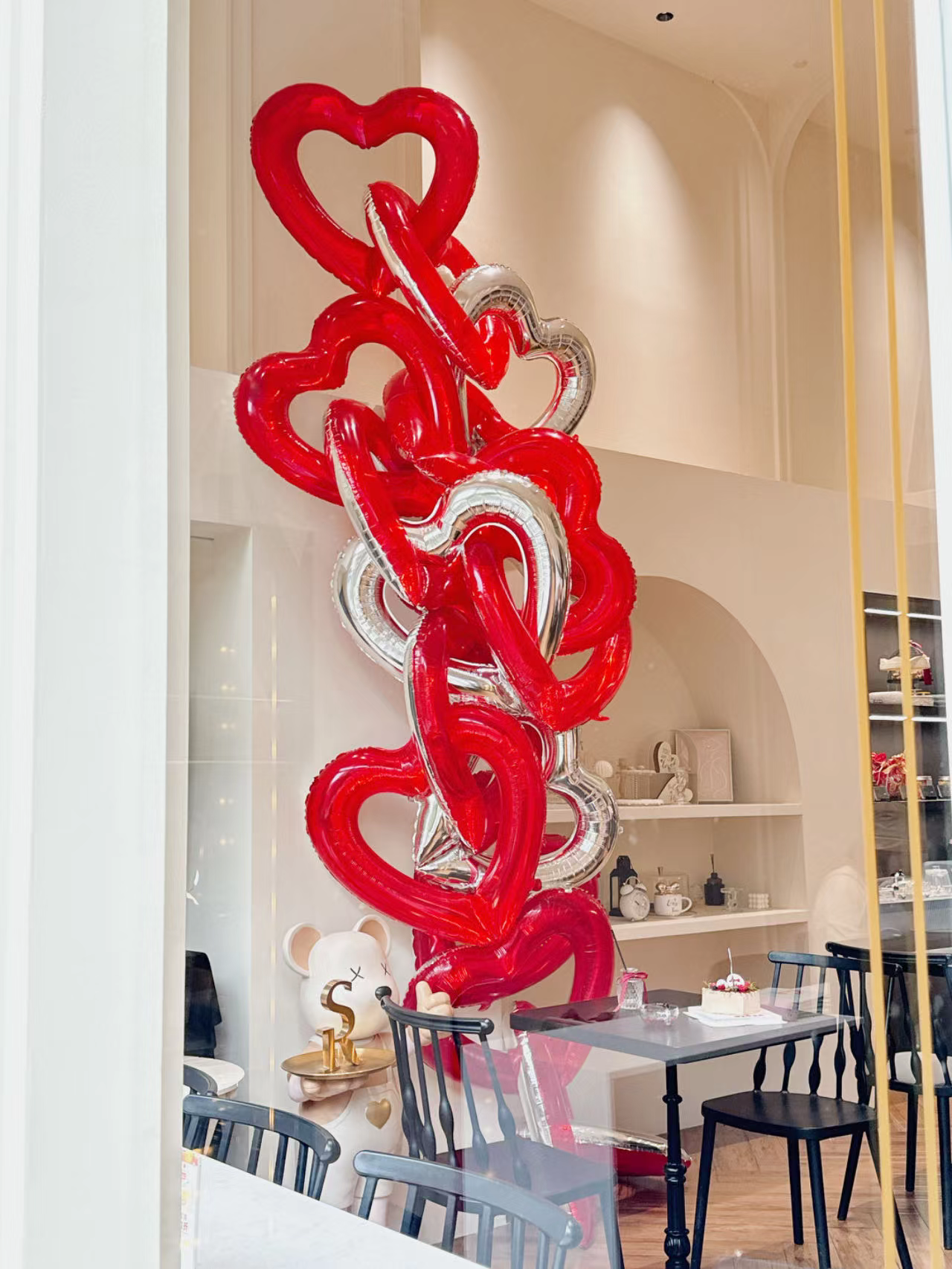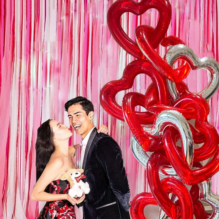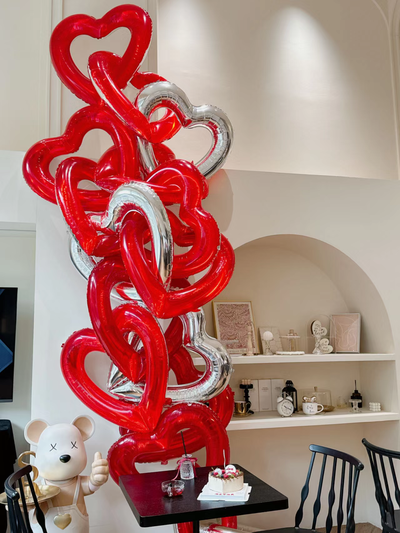 - red/silver foil surface creates a sparkling gemstone effect under lights. Each heart measures 32 inches (75cm) – 2X larger than standard 18" balloons for eye-catching decor.