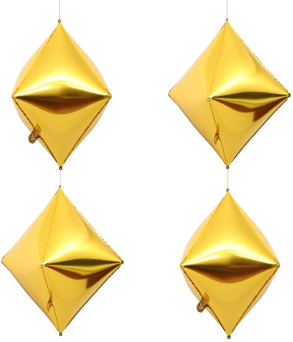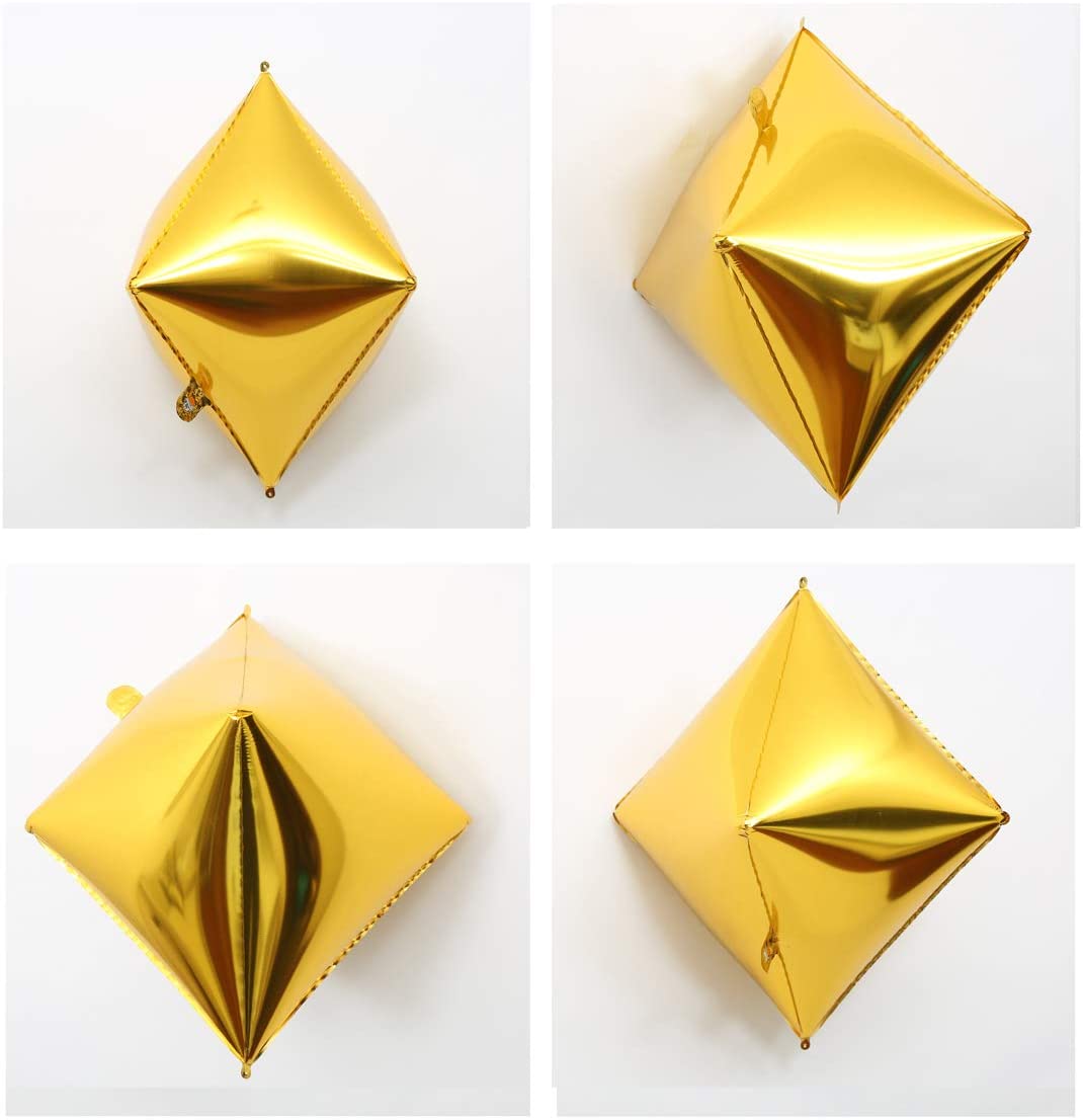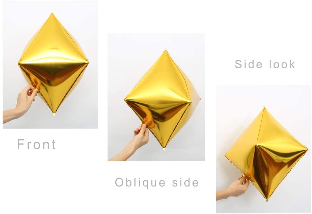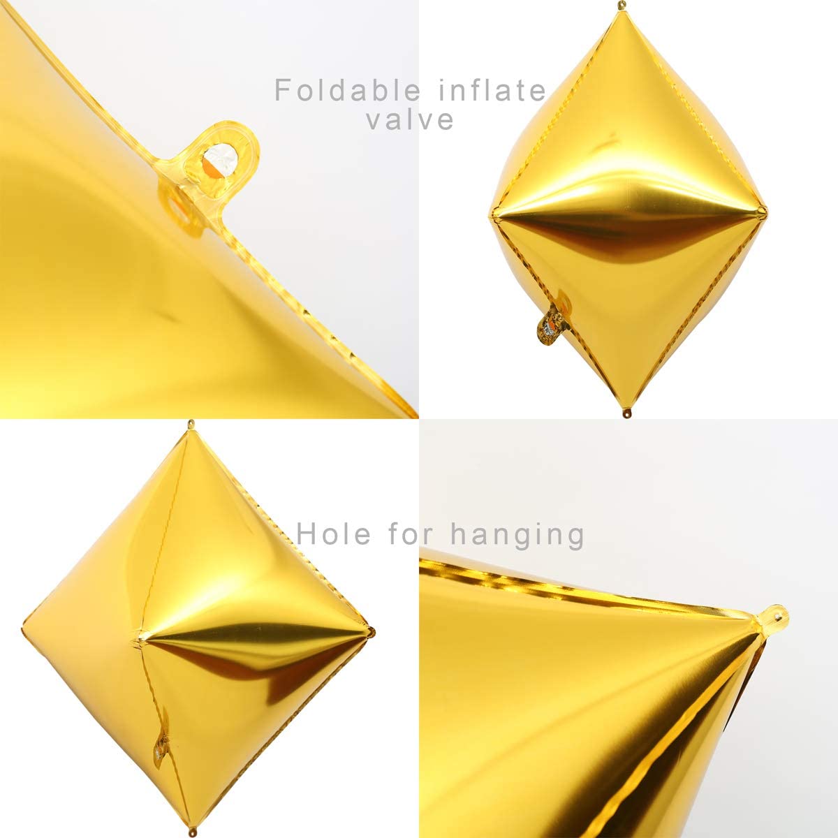 - √HANGABLE & SELF-SEALING. Each diamond-shaped 4D cube mylar balloons have a hole on the top for your ceiling hanging byline or Hang from a fishing line. Self-sealing valve for easy use and not air-leak. Multi-purpose use ,greate for filling helium floating or add to the wedding balloon garland kit .4D Gold polyhedron rhombus foil balloons could lasting time 60 days with air, floating days 15-30 days with helium.They will bring you a fantastic party, create unforgettable memories.