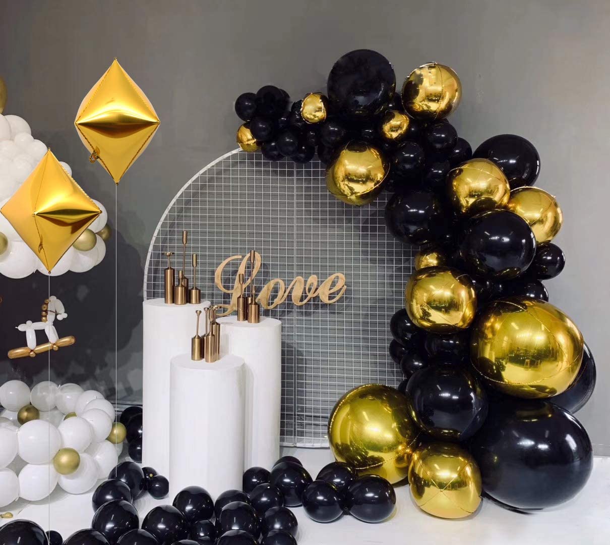 - √PARTY DECORATION. Beautiful 4D gold diamond cube mylar balloons for high fashion wedding, warm baby shower birthday party supplies photo backdrop Venue Decor, you can also use on Valentine's theme balloon garland for adorn.