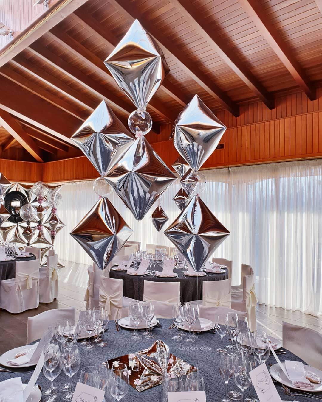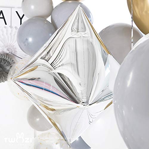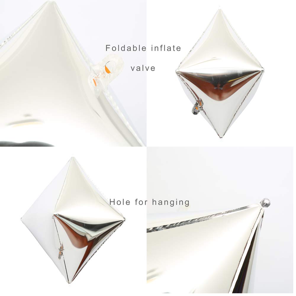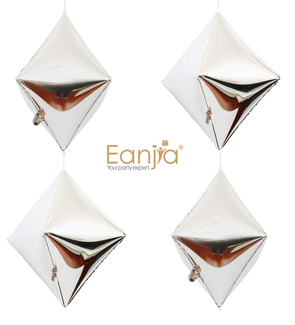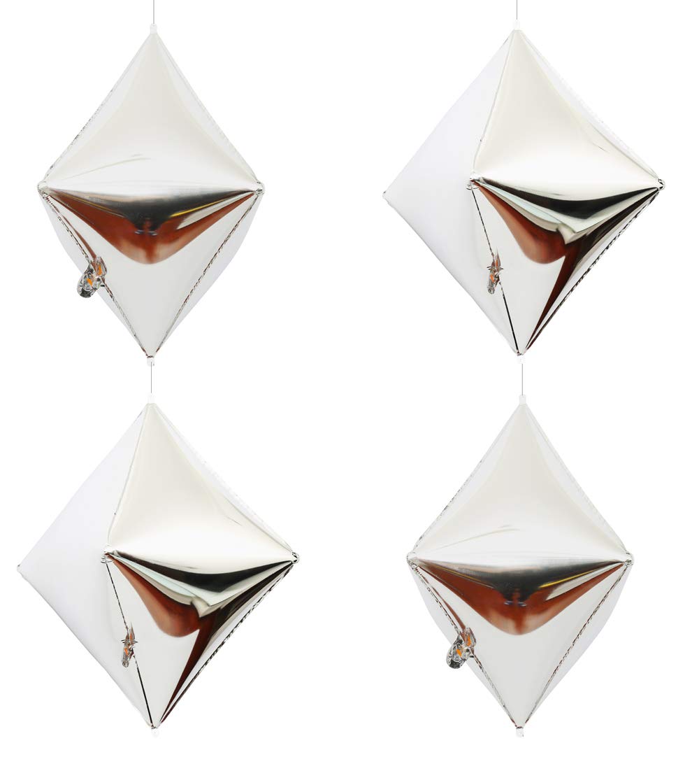 Eanjia 4D Silver Polyhedron RhombusAluminum Foil Balloons 4count Hangable Crown Silver Diamond Mylar Cube Balloons for Baby shower Space Frozen Wonderland Birthday Party & Wedding Party Decor