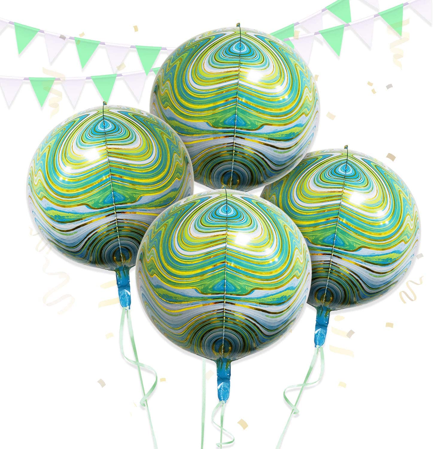 Eanjia Green Gold Agate Orb Balloons Hangable 4 Count 16" 4D Foil Balloons Round Aluminum Balloons 22 Birthday Balloons Decorations Wedding Balloon Arch Kit Green Gold Celebration Party Supplies