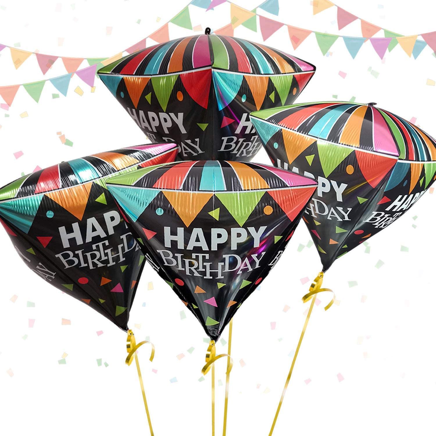 Eanjia Happy Birthday 4D Diamond Foil Balloons Large Triangle Mylar Balloons Color Printed for Birthday Party Use (Diamond-Happy Birthday A)