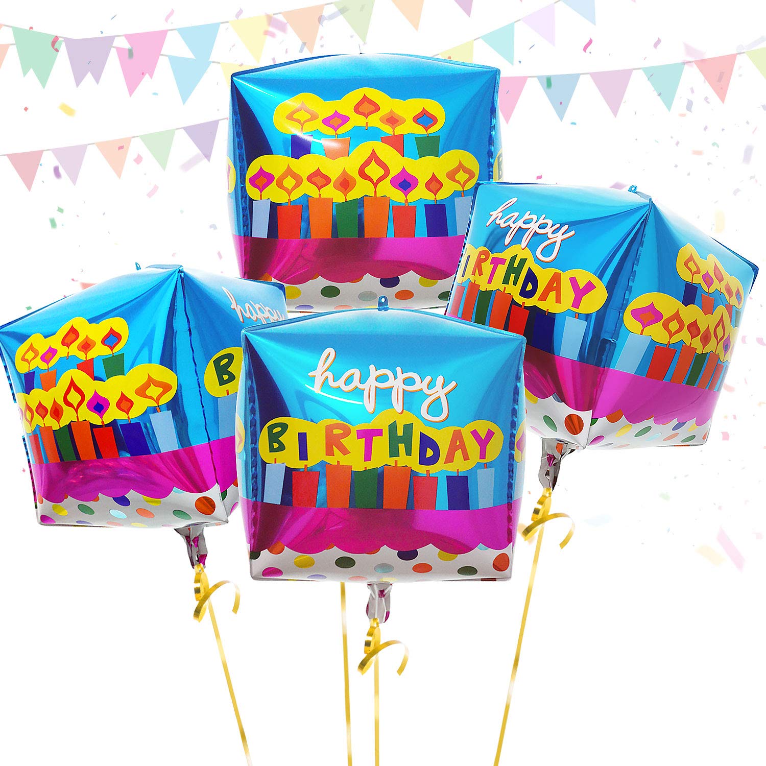 Eanjia Happy Birthday Cube Balloons 15inch 4D Cube Aluminium Foil Mylar Balloons for Birthday Party Decoration (Cube-Happy Birthday B)