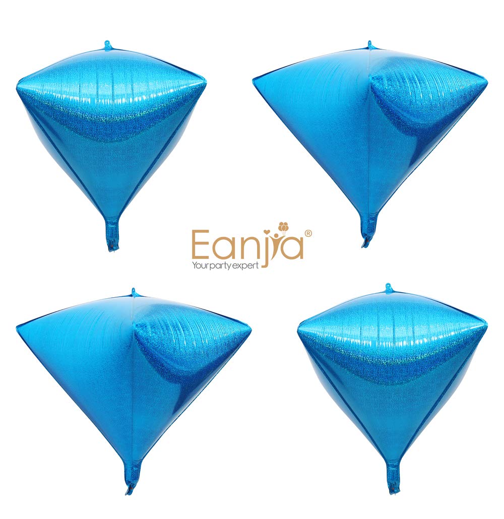 Eanjia Holographic Laser Blue Foil Diamond Balloons 4count 4D Foil Balloons 17"Hangable Triangle Cube-Shaped Aluminum Mylar Balloon for Baby Shower Birthday Wedding Family Party Decoration (blue)
