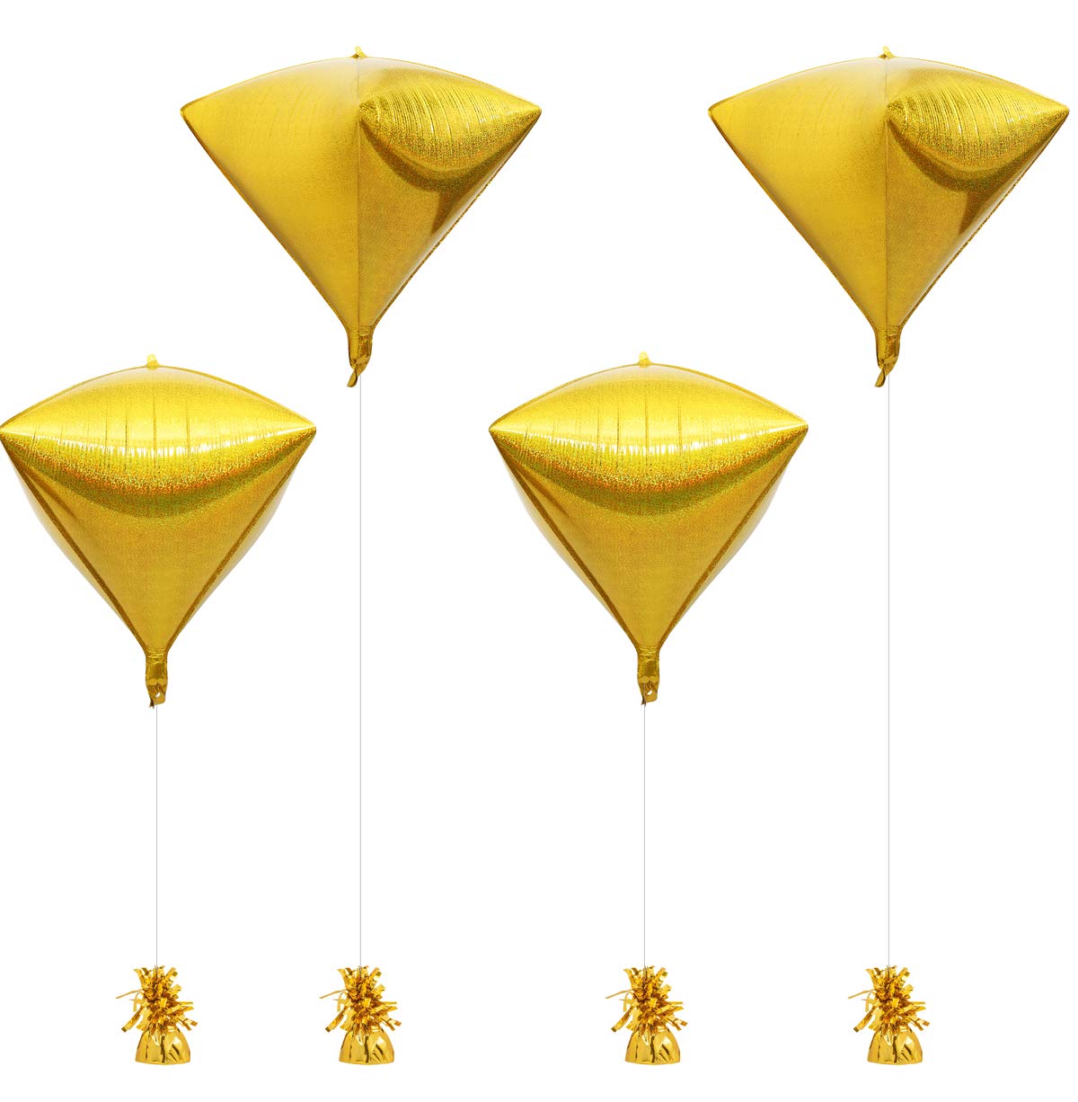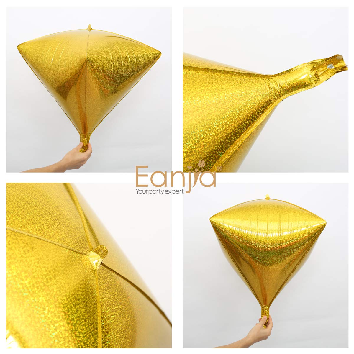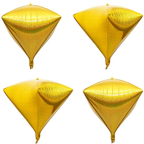 Eanjia Holographic Laser Gold Foil Diamond Balloons 4count 4D Foil Balloons 17"Hangable Triangle Cube-Shaped Aluminum Mylar Balloon Graduation Balloons for Baby Shower Birthday Wedding Family Party School Party Decoration (gold)