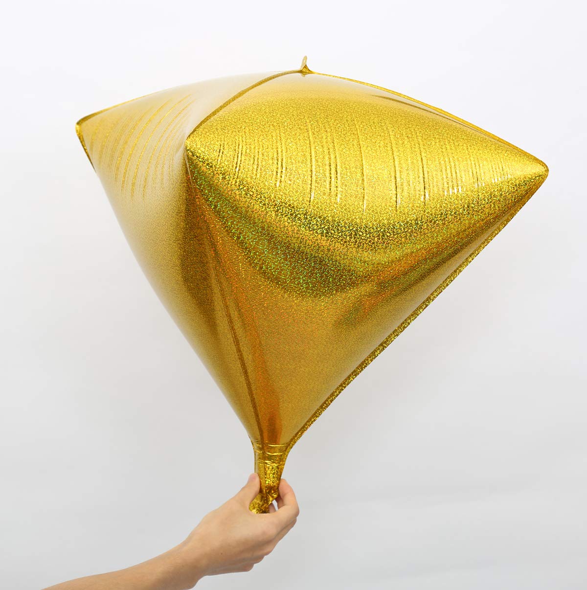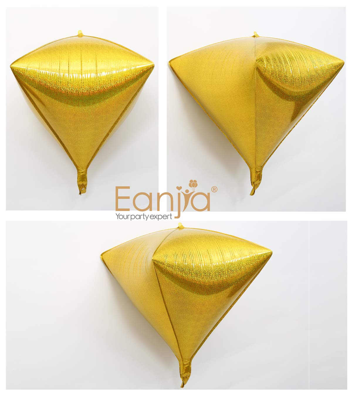 4.PARTY DECORATION. 4D hangable metallic reflex gold diamond triangle cube-shaped aluminum mylar Balloon for high fashion weddings, warm baby shower birthday party festive celebrations, door decoration, and bars, you can place them in the home or office for Decoration, you can also use on kids girl diamond theme balloon garland for adorn. Celebrate your special occasion or event with a holographic laser gold diamond foil balloon. It will instantly make a party come to life.