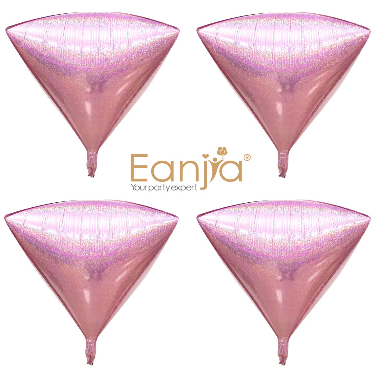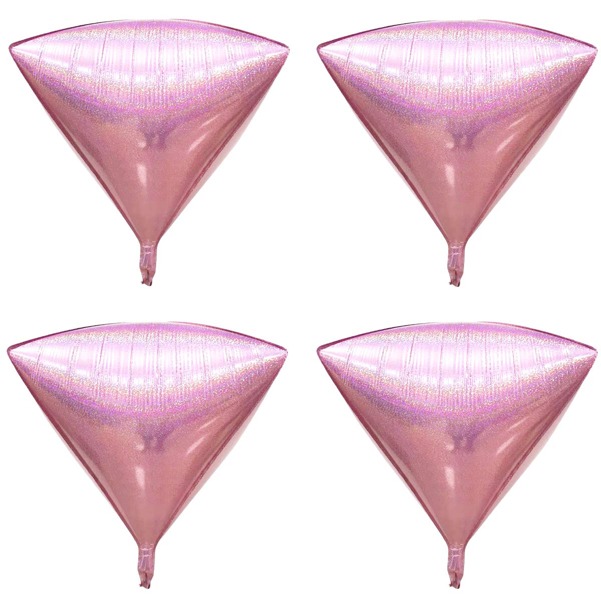 Eanjia Holographic Laser Pink Foil Diamond Balloons 4count 4D Foil Balloons 17"Hangable Triangle Cube-Shaped Aluminum Mylar Balloon for Baby Shower Girl Birthday Wedding Family Party Decoration (pink)