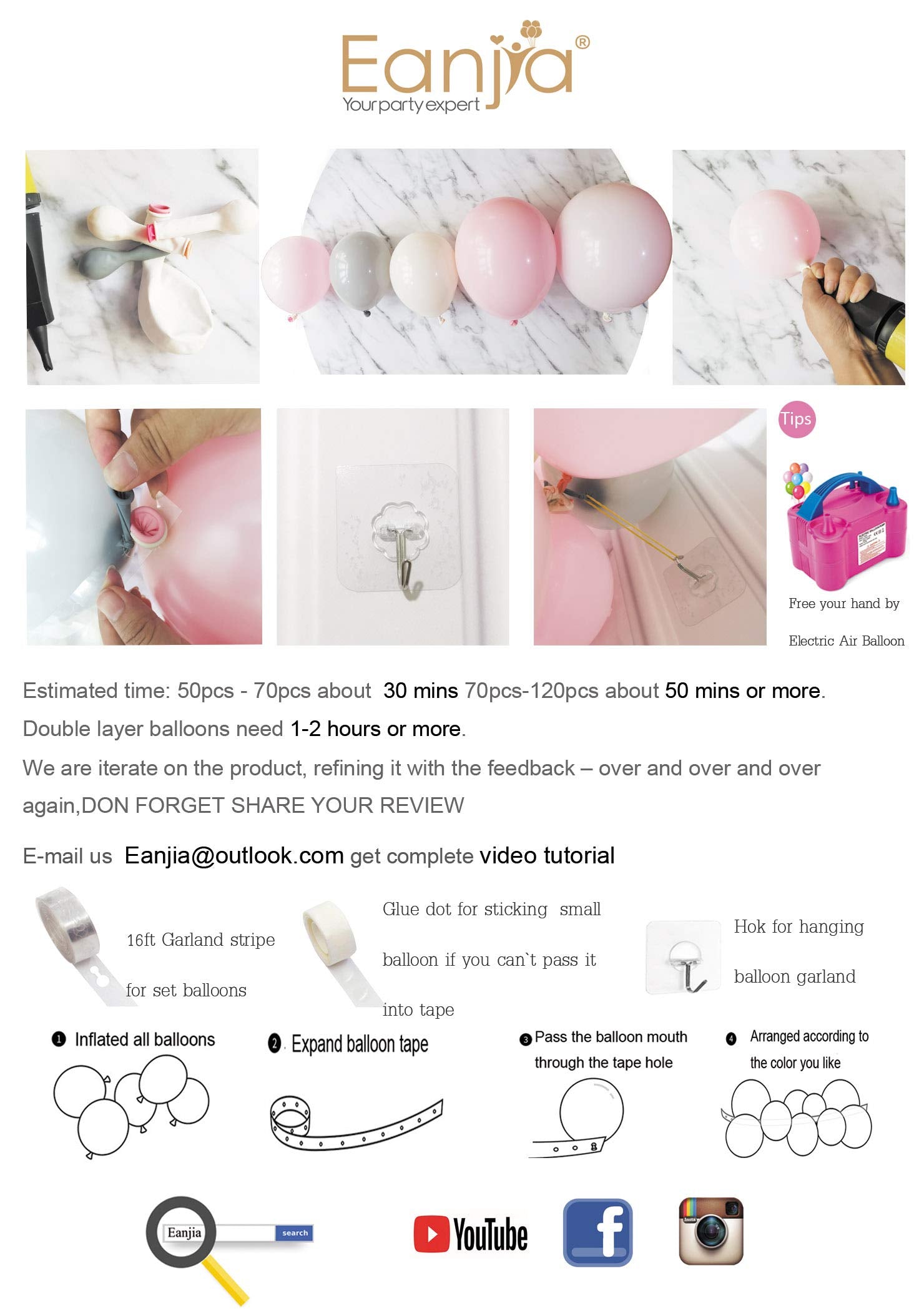 ALL KIT TOOL FOR DIY | Hand pump x 1 (hand pump for 5" double stuffed balloon use) , Balloon Garland Tape x 1 (insert balloons) ; Hooks x 3 (for hanging balloon garland ) ; Tying Knot x 2 (Release your hands and prevent sore of fingers ) Rubber band x 3 ( attach balloong garland to hook)