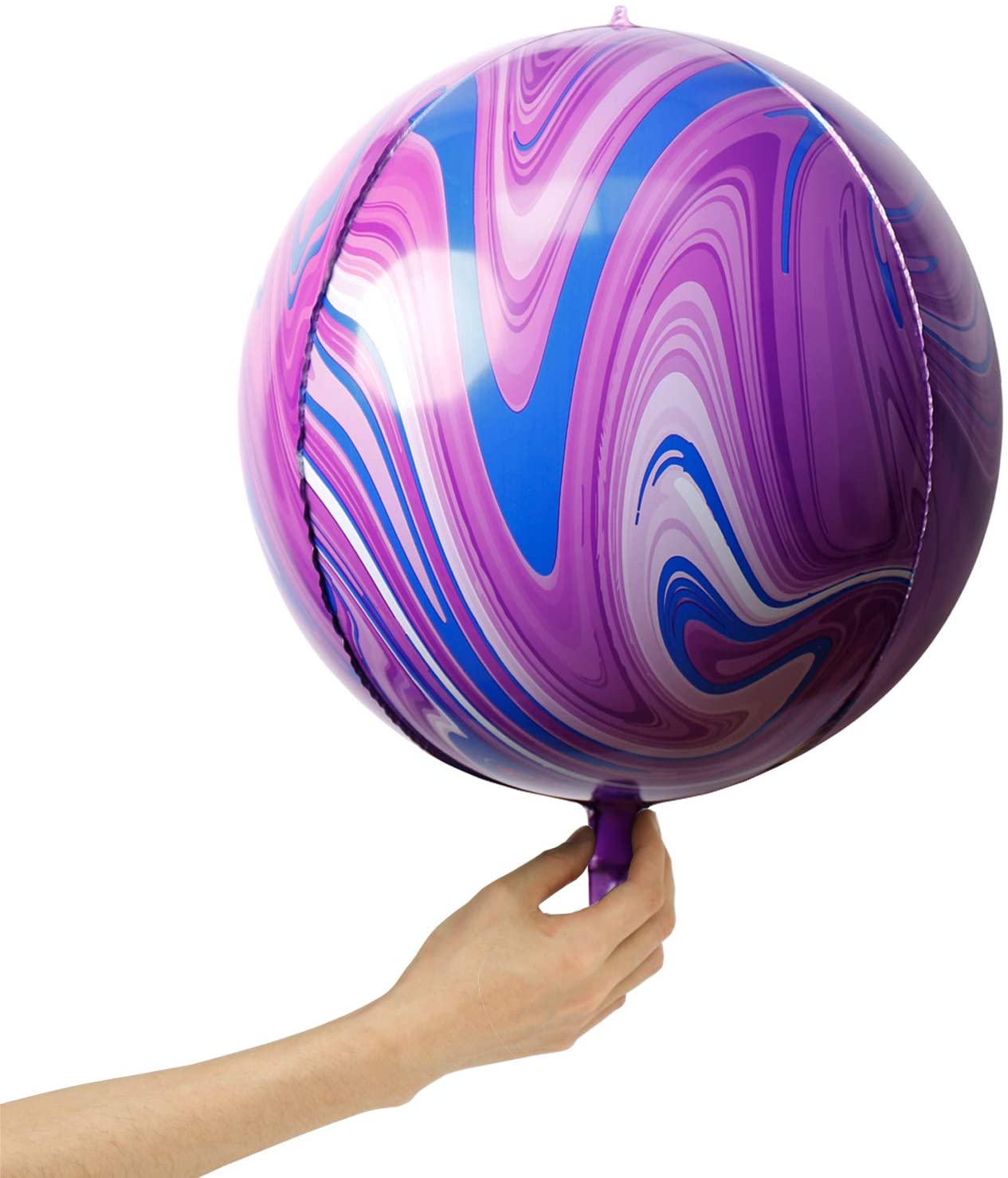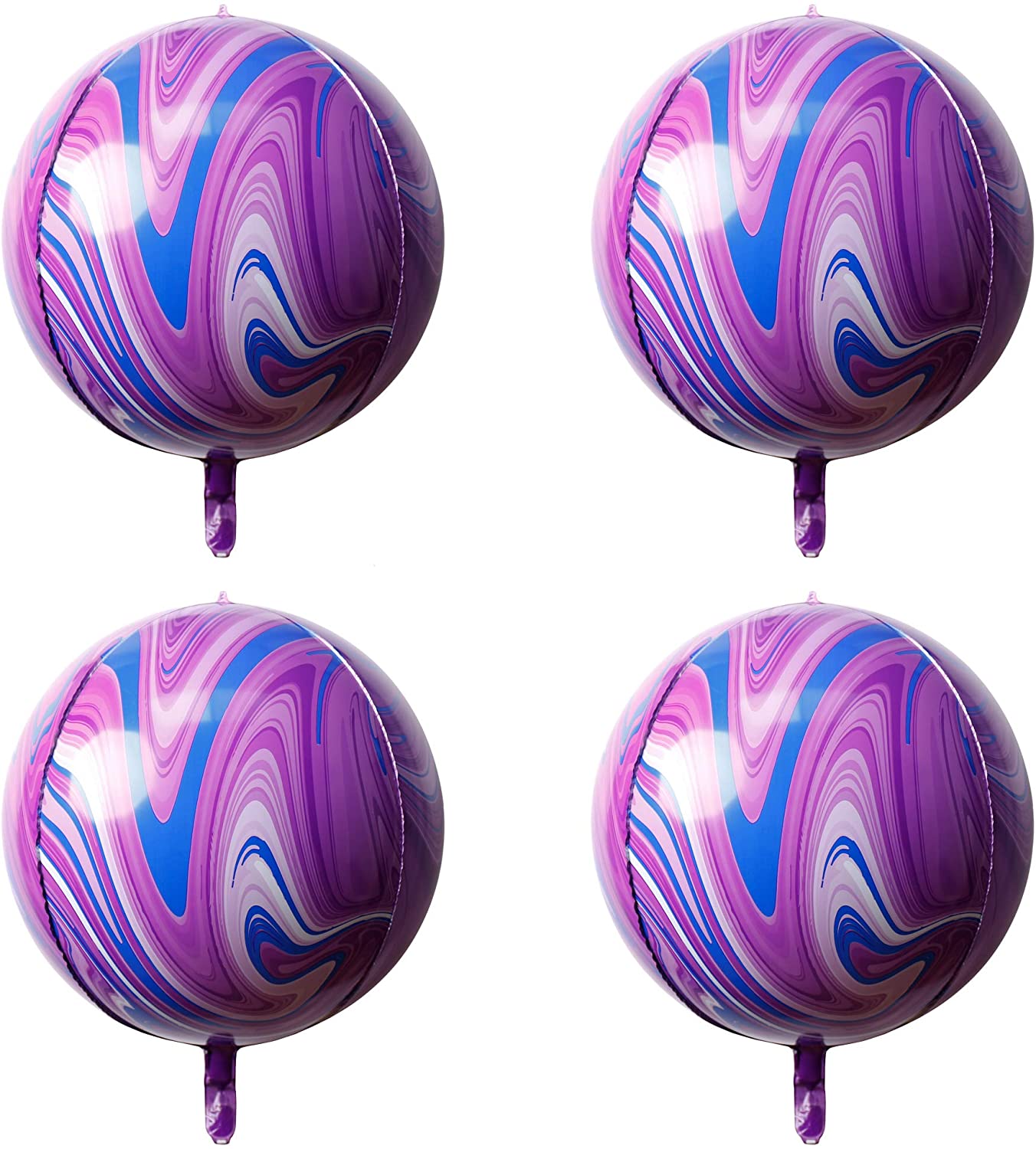 Eanjia Purple Agate Orb Balloons Hangable 4 Count 16" 4D Foil Balloons Round Aluminum Balloons 22 Birthday Balloons Decorations Wedding Balloon Arch Kit Purple Celebration Party Supplies