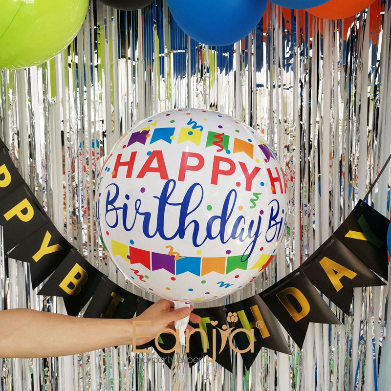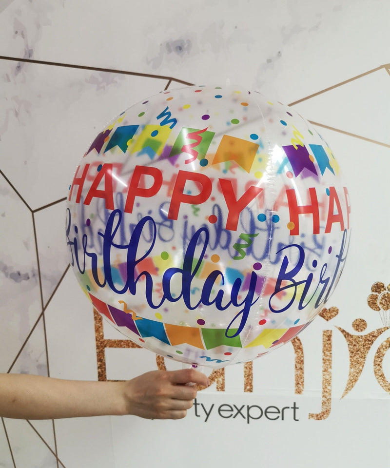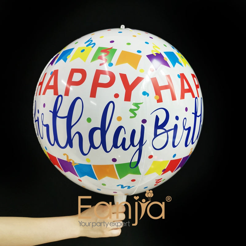 Eanjia White Happy Birthday Orbz Balloons 16inch Hangable 4D foil Balloons Plane szie 22inch