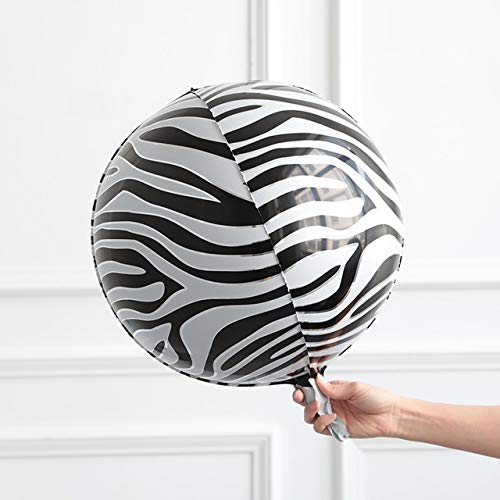 Eanjia Zebra Pattern 4D Balloons 4pcs Safari Print Balloons 4D Round Foil Balloons for Baby shower Photo Shower Birthday Party Supplies Wedding Balloon Arch Kit Zebra Balloon Garland Kit Zoo Decorations