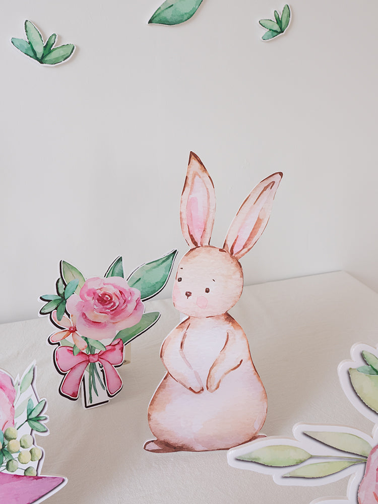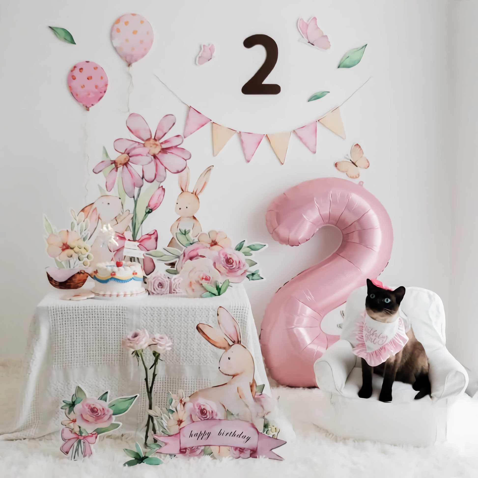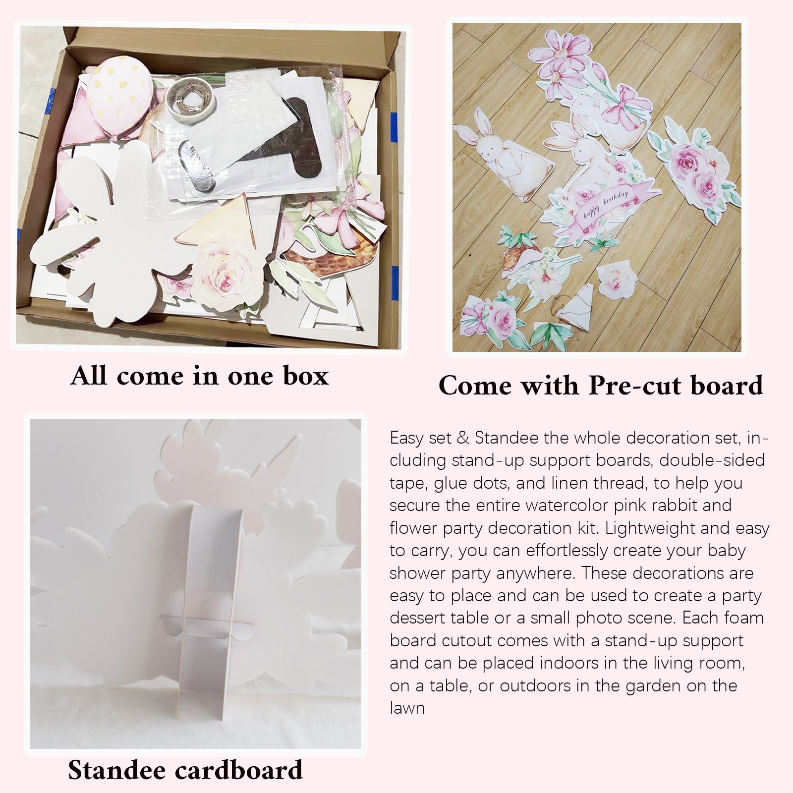 Pink Bunny Flower Balloons Standee Party Decoartion Foam Board Cutout Set 30pcs