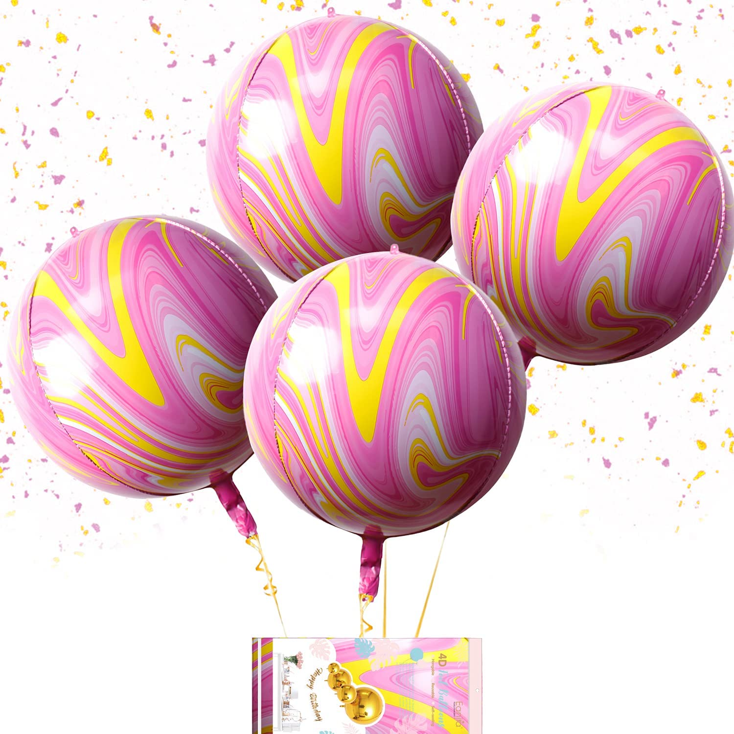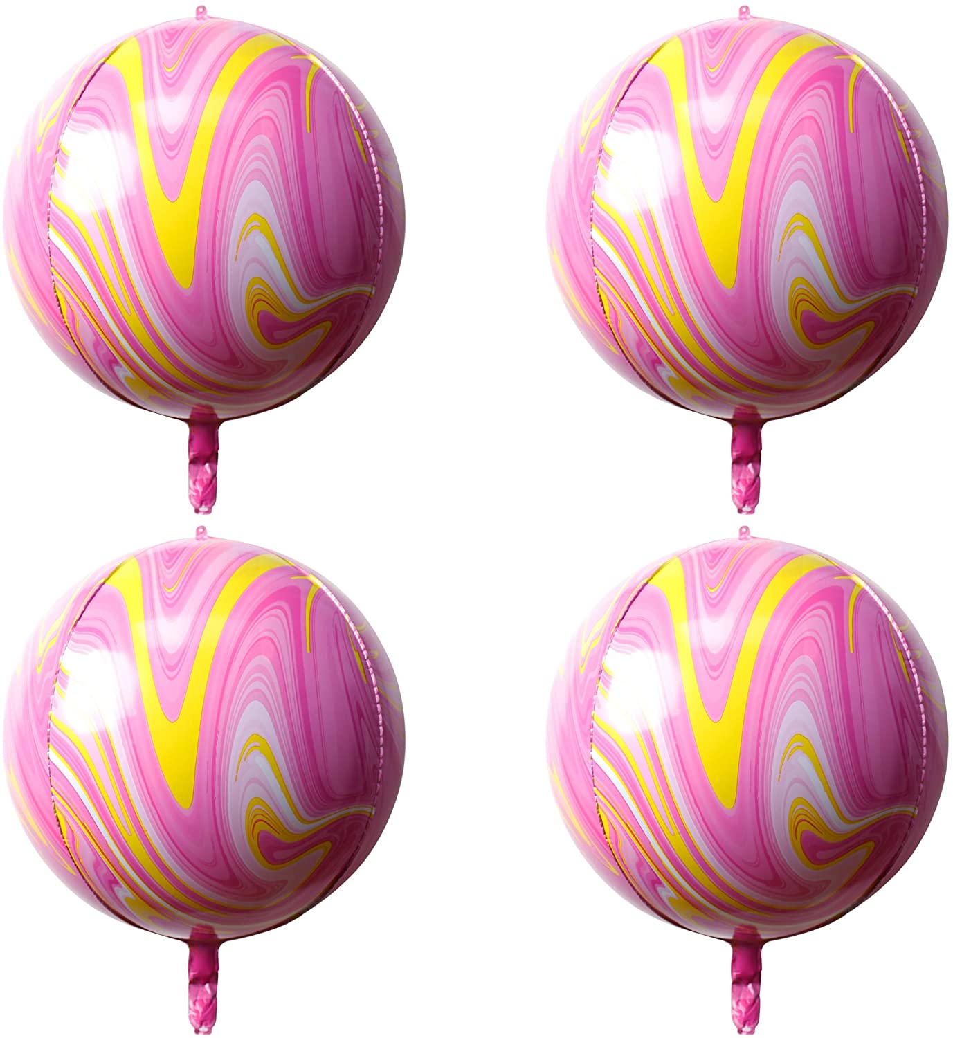 Roll over image to zoom in Eanjia Pink Agate Orb Balloons Hangable 4 Count 16" 4D Foil Balloons Round Aluminum Balloons 22 Birthday Balloons Decorations Wedding Balloon Arch Kit Pink Celebration Party Supplies